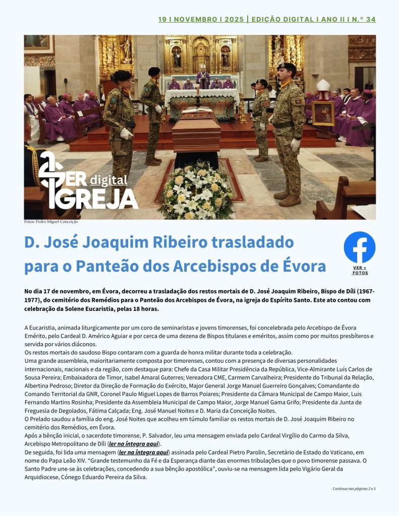 Jornal “a defesa” – 19 de Novembro de 2025 (digital) Nov 19, 2025 Facebook Twitter LinkedIn Gmail Print Friendly Like Capa da edição desta semana do jornal “a defesa” (imagem em cima) Capa da edição desta semana do Suplemento Ser Igreja (imagem em cima)
