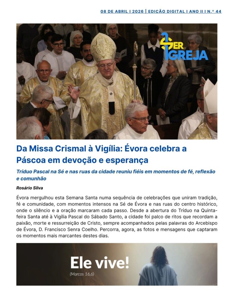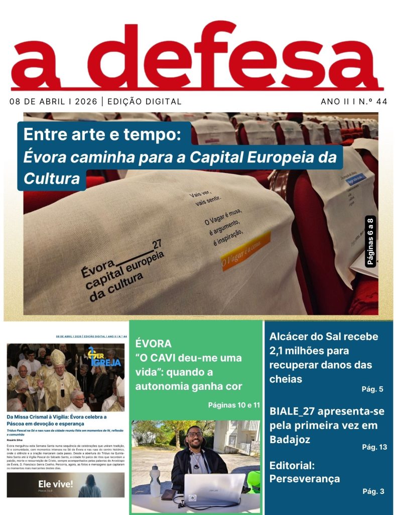 Capas das edições impressas de 8 de abril de 2026 do jornal “a defesa” e do suplemento “Ser Igreja Évora”. Abr 8, 2026 Facebook Twitter LinkedIn Gmail Print Friendly Like
